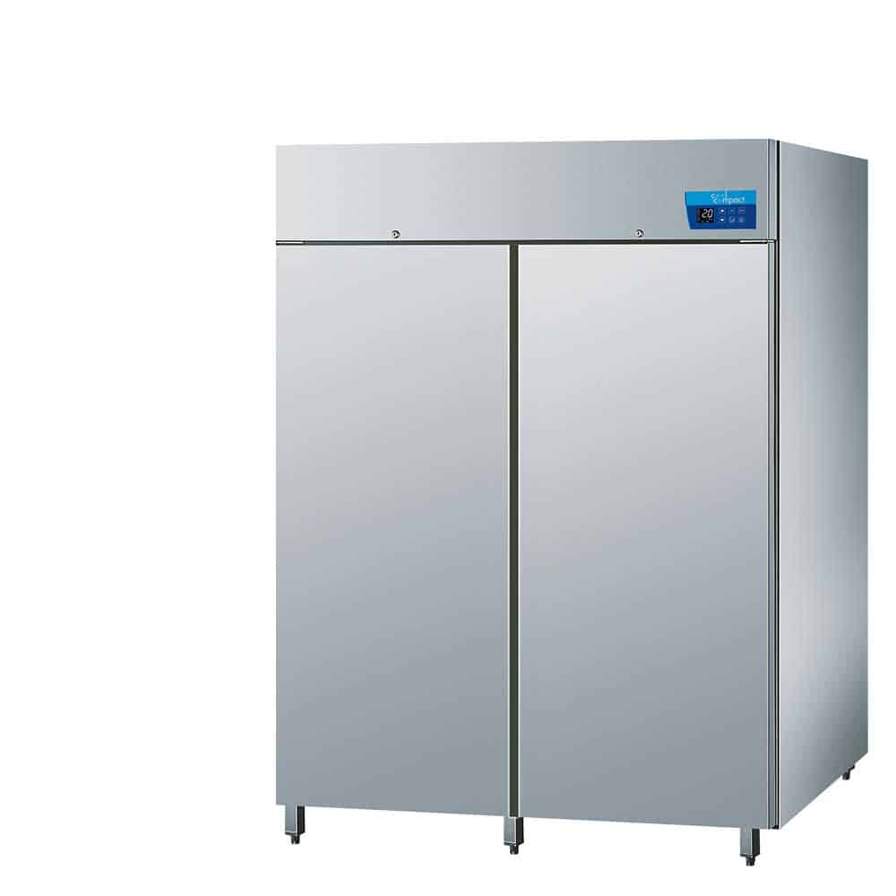 Armoire négative GN 2/1 2 Portes. Temp: -15°C / -22°C.Avec Groupe Logé. Intérieur et extérieur complétement en inox AISI 304. Monobloc extérieure ; Porte avec fermeture automatique et serrure ; Conception hygiénique ; Contrôle électronique, mode ECO automatique, écran LCD de 3 pouces. Dotation: Eclairage à LED, 6 Grilles inox, 6 glissieres – Puissance Electronique: 0,68 – Puissance Frigor.: 0,82 – Dim: 1390x810x2020 – Poid: 310Kg.