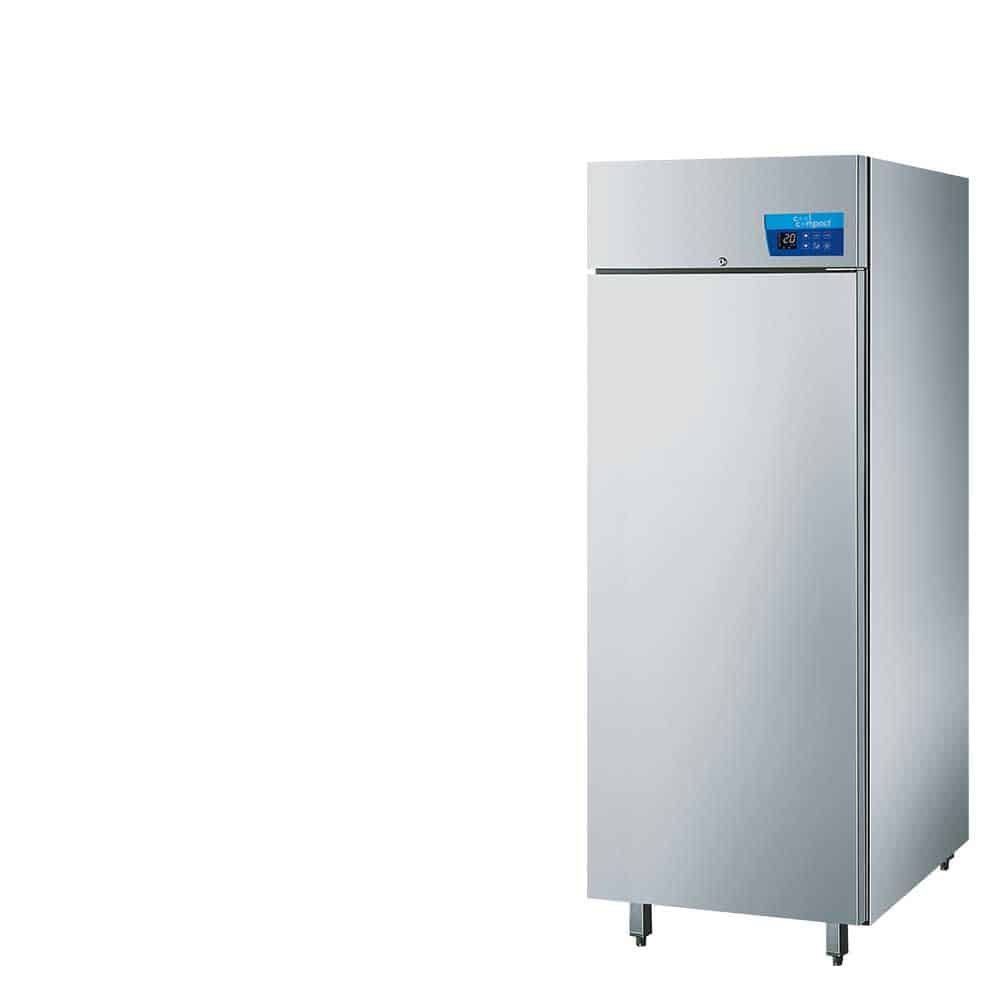 Armoire positive GN 2/1 pour Poisson1 Porte. Temp: -4°C / +5°C.Avec Groupe Logé. Intérieur et extérieur complétement en inox AISI 304. Monobloc extérieure ; Porte avec fermeture automatique et serrure ; Conception hygiénique ; Contrôle électronique, mode ECO automatique, écran LCD de 3 pouces. Dotation: Eclairage à LED, 10 containers en plastic avec faut fond pour glace – Puissance Elt: 0,28 Puissance Frigo: 0,34 – Dim: 720x840x2050 – Poid: 185