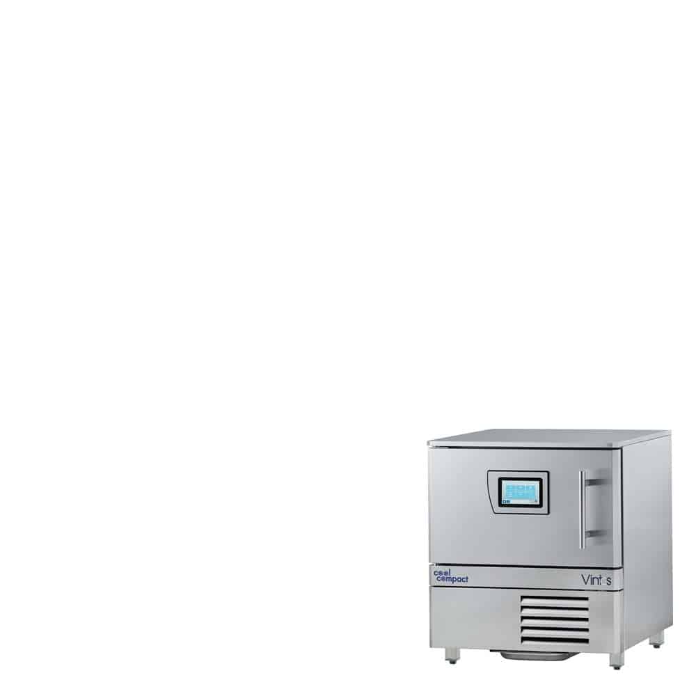 Cellule de refroidissement rapide et surgélation VINTOS Groupe logé. Capacité de charge : 4 x GN1/1, sens transversal, bacs 65 mm prof. Dimensions : 790 x 846 x 900 mm (L x P x H) Puissance électrique : 230 V / 0,8 kW Puissance frigorifique : 1,3 kW -10°C VT 0,5 kW -35°C VT Gaz : R452a – Puissance Electronique: 0 – Puissance Frigor.: 1,3 – Dim: 790x846x900 – Poid: 160Kg.