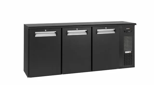 Desserte monocoque norme C.E. Groupe loge. Temperature +2/+18°C. Finition exterieure skin-plate anthracite et interieur argente. Eclairage LED blanc & fermeture a cle sur les modeles vitres. Gaz R600A. Isolation polyurethane injecte in situ sans C.F.C. Epaisseur 40 mm – Regulation electronique – Degivrage automatique – re-evaporation automatique des eaux de condensats – 2 plateaux réglables par porte. Pieds réglables par l’interieur de 860 mm a 880 mm – Puissance frigorifique: 515W pour tous les modeles
