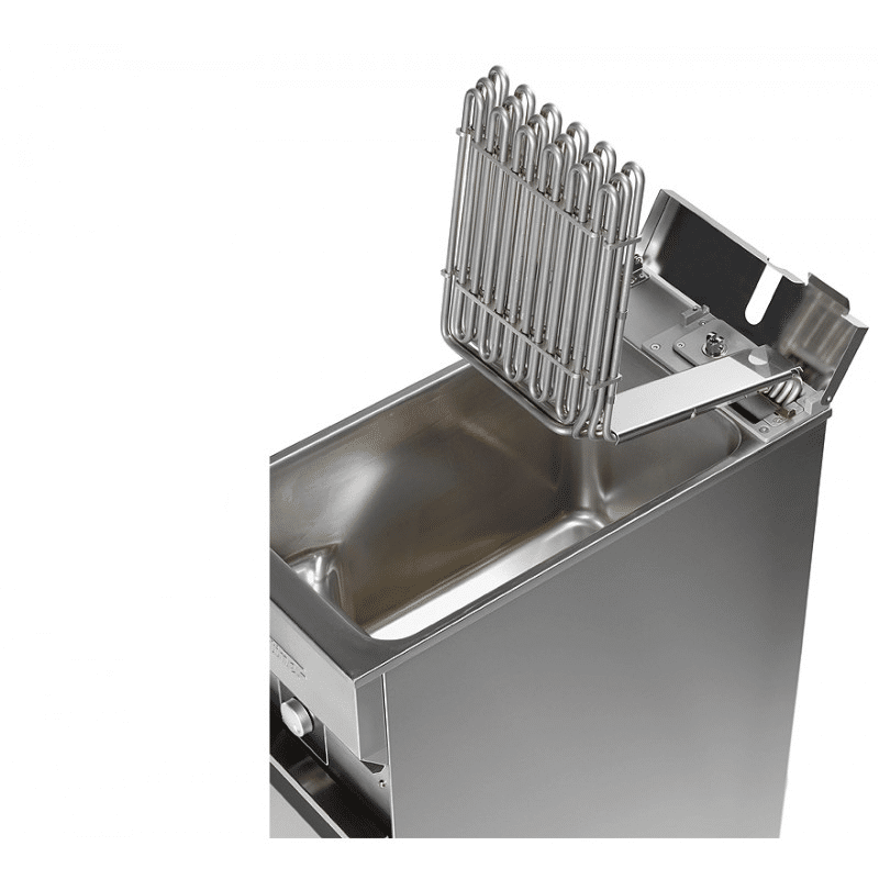 Régulation électronique de température avec minuterie à répétition, idéal pour cuisson à basse température en version «Turbo» avec un corps de chauffe plus puissant idéal pour frites congelées Version Turbo Régulation électronique de température Pour une optimisation de la cuisson et du rendement, quelle que soit la quantité idéal pour cuisson à basse température (170°C) Sicotronic Raccordement pour optimisation d’énergie incorporé selon DIN 18875 Utilisation facile Un bouton de commande principal Économie d’énergie Isolation maximale pour un rendement à 100% pour une chaleur maximale et sans perte d’énergie Zone froide Cuve avec récupération des déchets sous le corps de chauffe Nettoyage Sous le corps de chauffe, permet de récupérer les déchets Roulettes Machine équipée d’origine avec roulettes pour un meilleur confort et plus de flexibilité Turbo Idéal pour frites et aliments surgelés